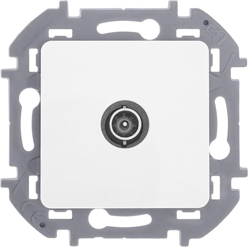 Розетка телевизионная для скрытого монтажа Inspiria, оконечная для схемы "шлейф", затухание 10дБ, 4-862МГц, цвет "Белый". Предназначена для подключения нескольких ТВ приемников к антенне, используется в схеме "шлейф" и устанавливается в конце линии.