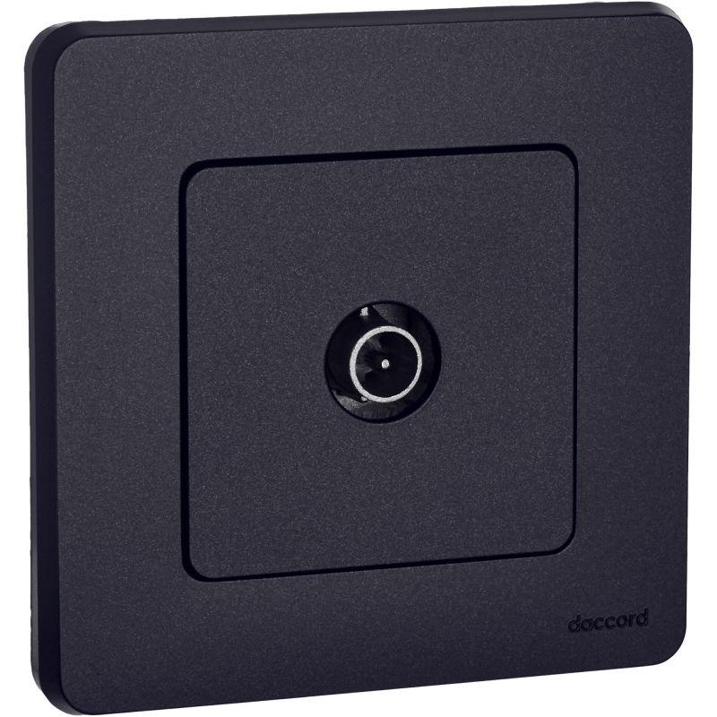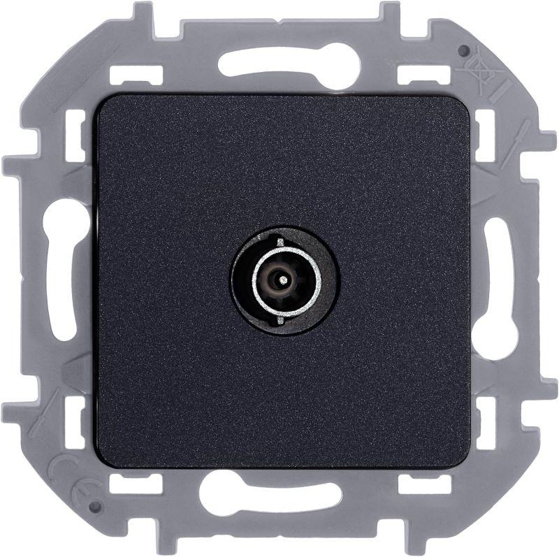 Розетка телевизионная для скрытого монтажа Inspiria, проходная для схемы "шлейф", затухание 14дБ, 4-862МГц, цвет "Антрацит". Предназначена для подключения нескольких ТВ приемников к антенне и используется в схеме "шлейф". Устанавливается в линии между антенной и оконечной розеткой.