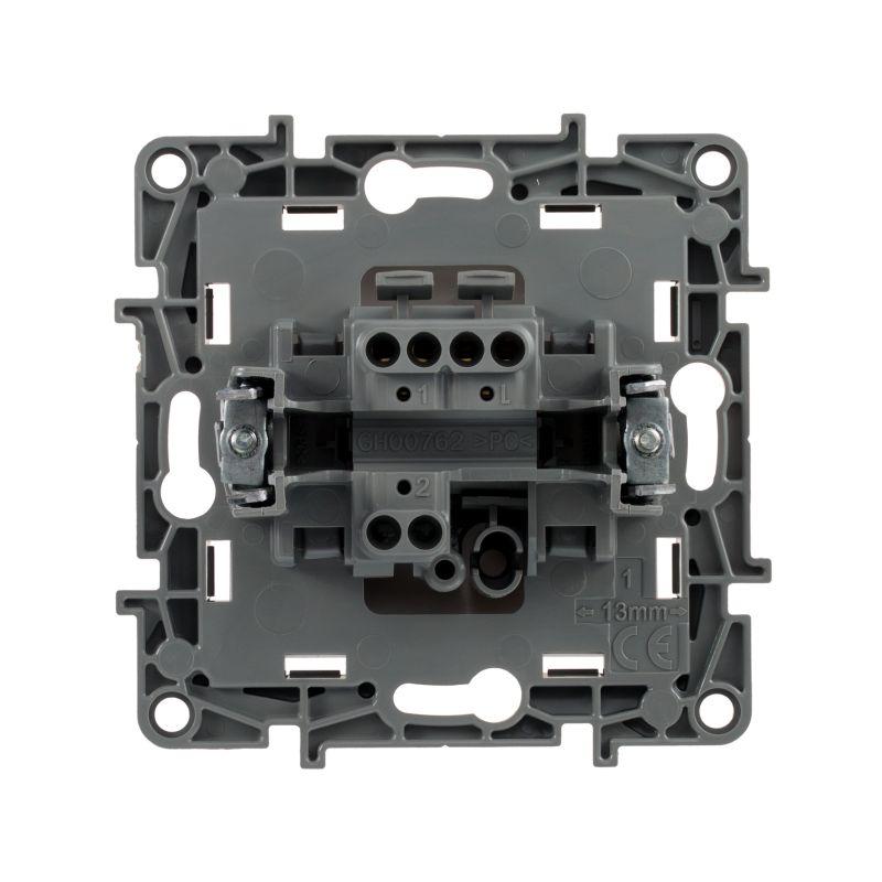 Выключатель одноклавишный ETIKA для скрытого монтажа, номинальный ток 10 А, предназначен для установки в электрических сетях жилых и общественных зданий и используется для управления приборами освещения, вентиляции и т.д.