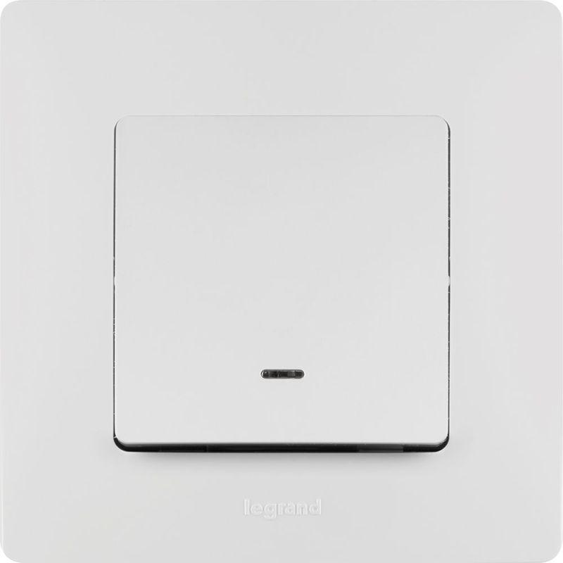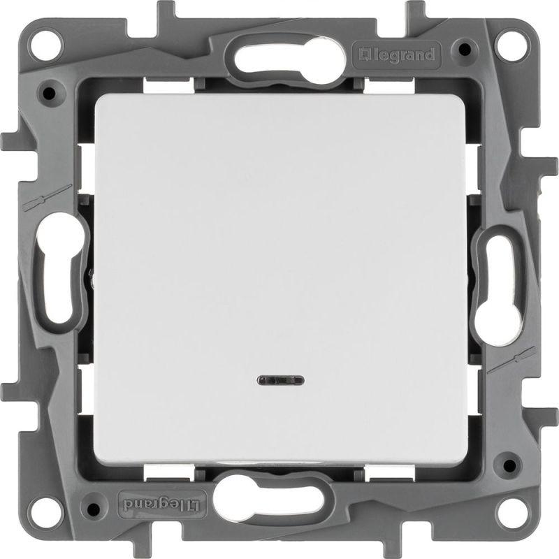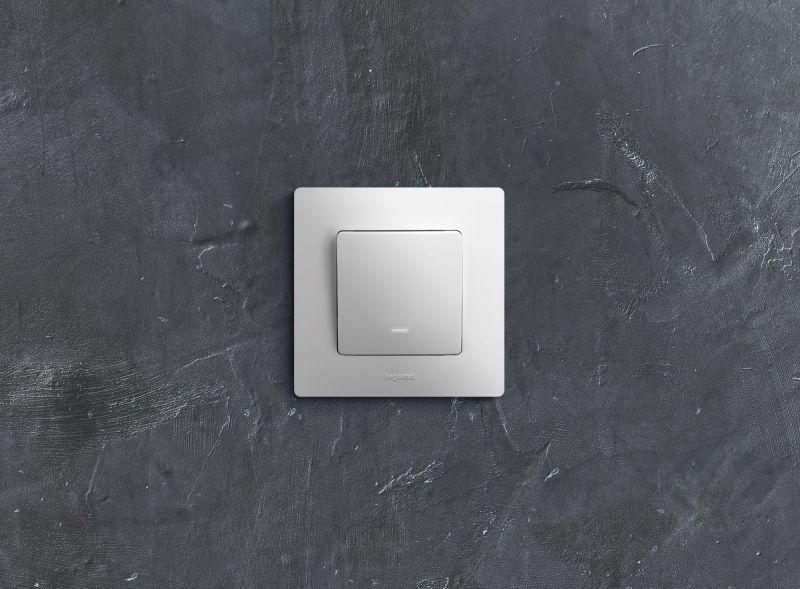 Выключатель с подсветкой одноклавишный ETIKA для скрытого монтажа, номинальный ток 10 А. Используется для управления приборами освещения, вентиляции и т.д.