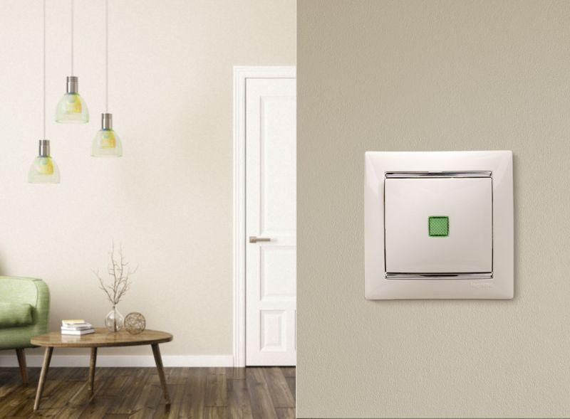 Выключатель одноклавишный с подсветкой VALENA для скрытого монтажа, номинальный ток 10 А, предназначен для установки в электрических сетях жилых и общественных зданий и используется для управления приборами освещения, вентиляции и т.д. Встроенная подсветка служит для упрощения поиска выключателя в темноте.