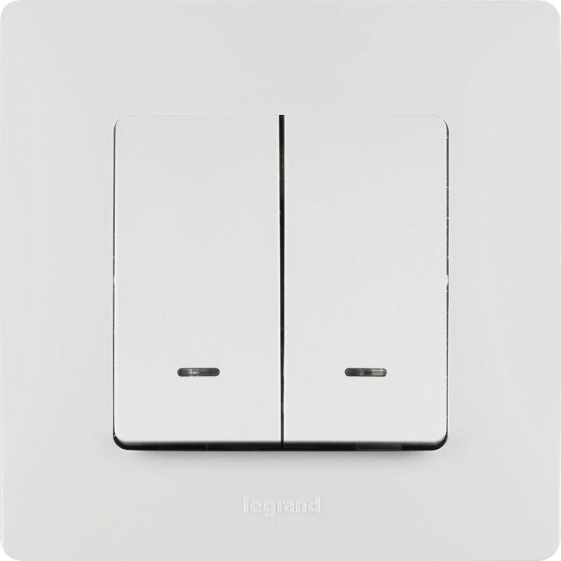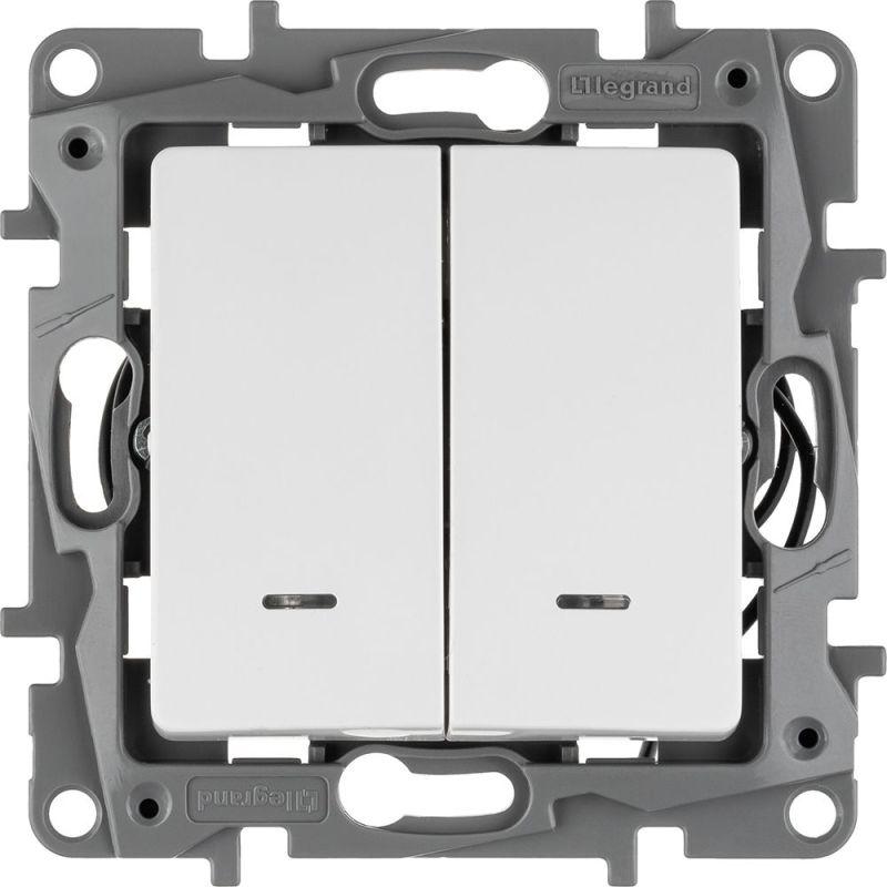 Выключатель 2-кл. СП Etika 10А IP20 250В 10AX с подсветкой/индикацией безвинтов. зажимы механизм бел. Leg 672204