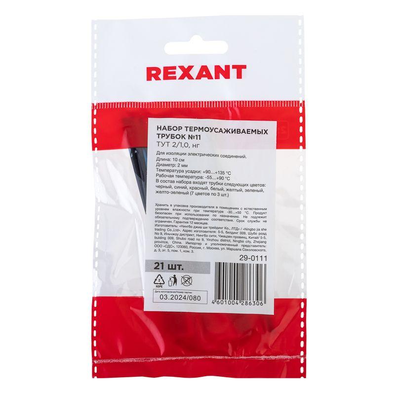 29-0111 | Набор трубок термоусадочных №11 ТУТ нг 2.0/1.0мм 7 цветов (уп.21шт по 10см) Rexant