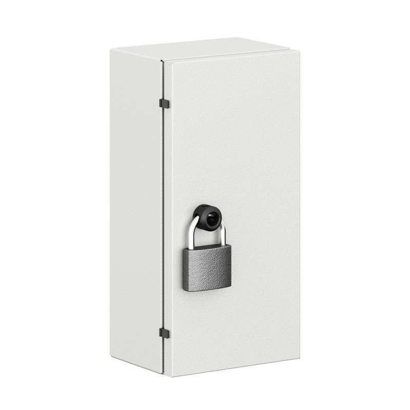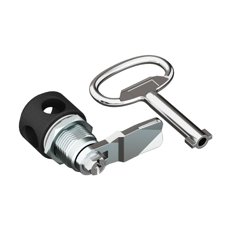 Предназначен для защиты корпусов от несанкционированного доступа. Изготовлен из прочного сплава ZAMAK с ригелем из оцинкованной стали. Обеспечивает степень защиты до IP66. Комплектуется личинкой под ключ с двойной бородкой 3 мм, доступ к которой перекрывается дужкой навесного замка. Совместим с корпусами ST, STX, STE, STEX, STH, оснащенными поворотными замками. Цвет: черный.