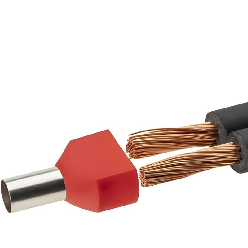 Наконечники-гильзы двойные (НШВИ2) предназначены для оконцевания многожильных сдвоенных проводников одинакового сечения класса гибкости 3 и выше с последующим подключением к пружинным или винтовые зажимам оборудования. Наконечники-гильзы двойные НШВИ-2 имеют широкую сферу применения. Активно используются при подключении автоматических выключателей, УЗО и другого оборудования для автоматизации и распределения. Форма изолированной манжеты и медной гильзы наконечников НШВИ-2 рассчитана на одновременный монтаж и подключение двух проводников. Длина контактной гильзы - 14 мм. Сечение провода - 6 мм2. Материал гильзы - медь M0 (содержание меди 99,99%). Цвет - желтый.