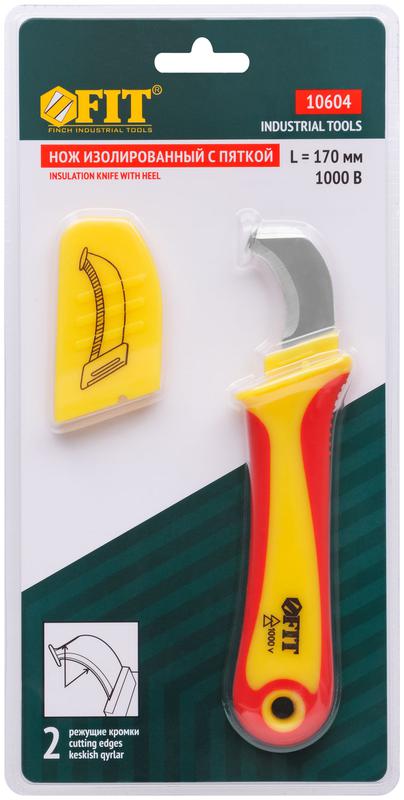 Нож для электромонтажных работ FIT IT с пяткой предназначен для снятия изоляции при напряжении до 1000 В. Пятка позволяет аккуратно снять изоляцию, не повредив при этом провод, что особенно важно для начинающих мастеров без опыта разделки кабелей. Диэлектрический нож с пяткой используется при работе с плоскими кабелями. Лезвие изготовлено из нержавеющей стали, рукоятка — пластиковая, прорезиненная. Пятка надежно и ровно приварена к лезвию. В комплекте поставляется защитный колпачок.