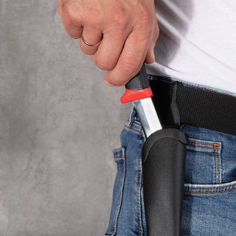 • Пластиковые ножны/чехол обеспечивают безопасное хранение и позволяют размещать нож на ремне