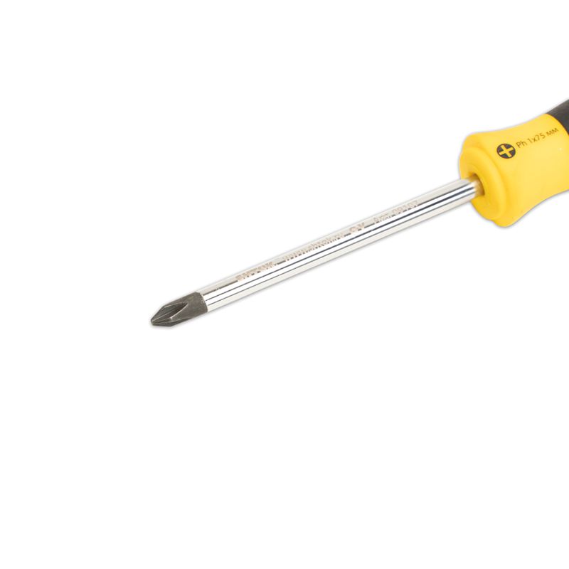 Крестовая отвертка SHTOK Ph1x75 мм 09107 предназначена для откручивания и закручивания саморезов с профилем Phillips. Надежный хват и точность работы обеспечивается за счет удобной двухкомпонентной рукоятки со вставками из термопластичного эластомера. Предусмотрен магнитный наконечник для удобства монтажа в приборах, расположенных вертикально.