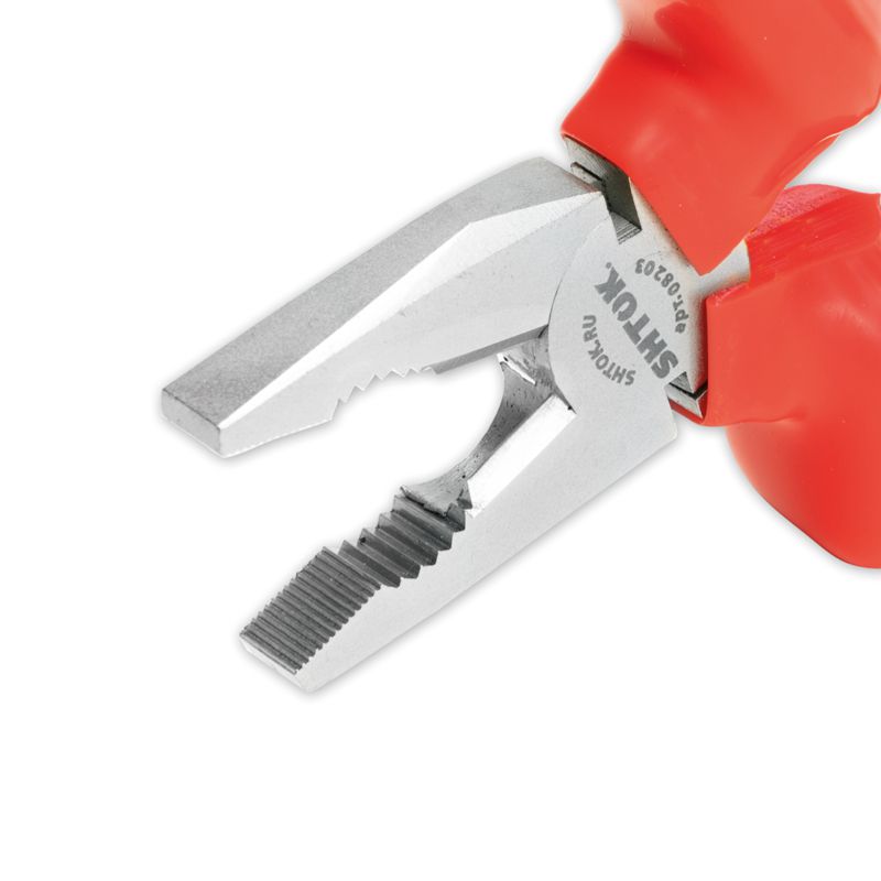 Рабочая часть диэлектрических пассатижей SHTOK 1000В 160 мм 08203, выполненная из хром-ванадиевой стали, увеличивает прочность инструмента.