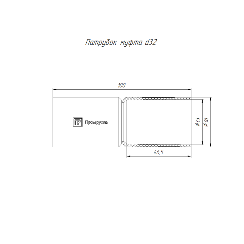 Патрубок-муфта d32мм черн. Промрукав PR13.0166