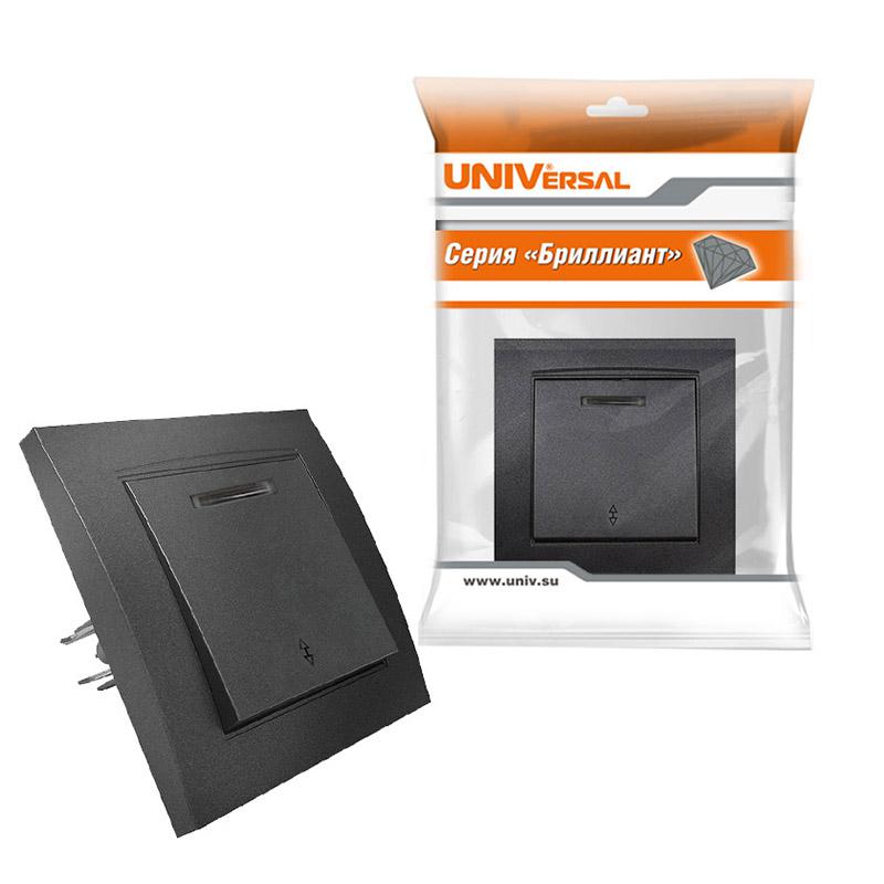 7947380-Gr | Переключатель проходной 1-кл. СП Бриллиант 10А IP20 с подсветкой в сборе графит Universal 7947380