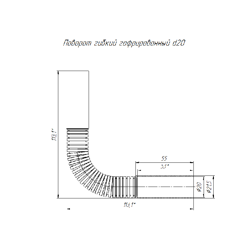 Предназначен для герметичного соединения гладких жёстких труб из пластика под произвольным углом, что позволяет придать более эстетичный внешний вид местам соединения. Используется в случаях сложного монтажа, для обхода препятствий. Минимальный радиус изгиба - 3 внешних диаметра.