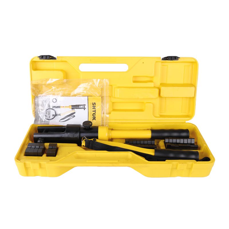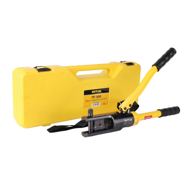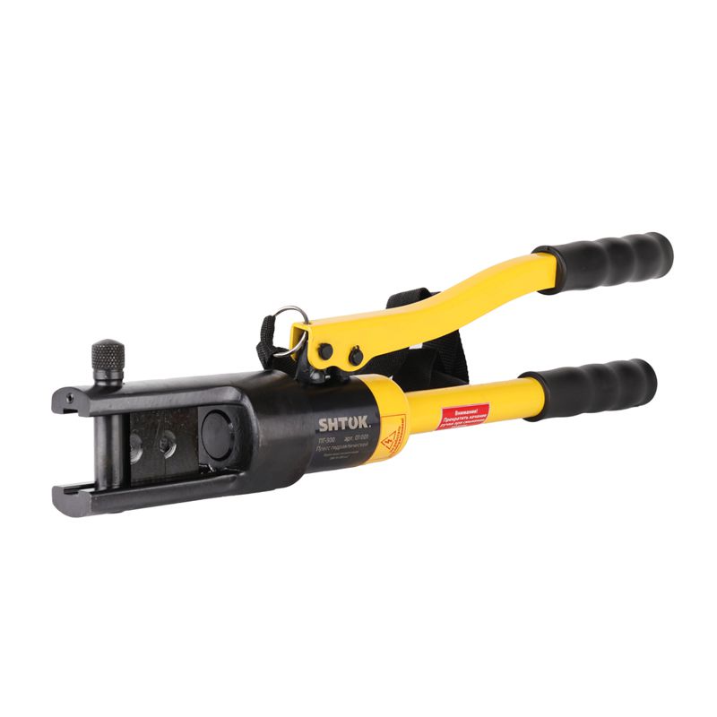 Ручной гидравлический пресс SHTOK ПГ-300 01001 предназначен для опрессовки медных и алюминиевых наконечников сечением от 10 до 300 мм2.