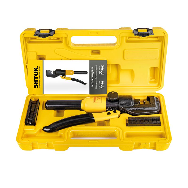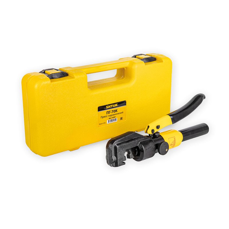 Ручной гидравлический пресс SHTOK ПГ-70К 01007 предназначен для опрессовки медных и алюминиевых наконечников сечением от 4 до 70 мм2