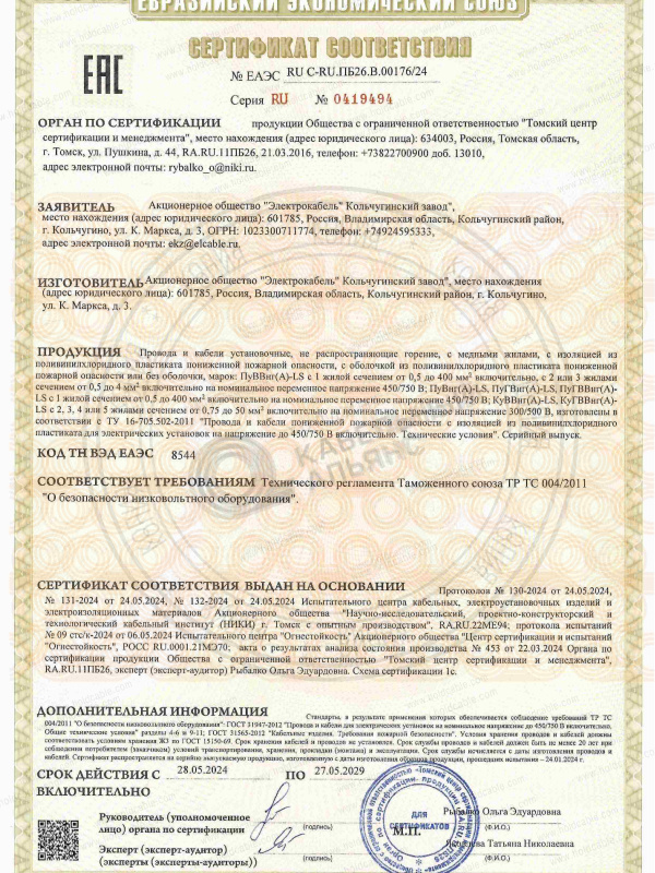 | Класс токопроводящей жилы (Европейские стандарты): | 5 - многопроволочная гибкая |