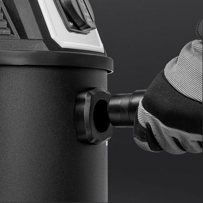 Сливная пробка быстро удаляет жидкость из бака. Увеличенный шланг длиной 4 м упрощает уборку больших площадей. Поворотные колеса и ручка для переноски облегчают перемещение пылесоса по объекту.