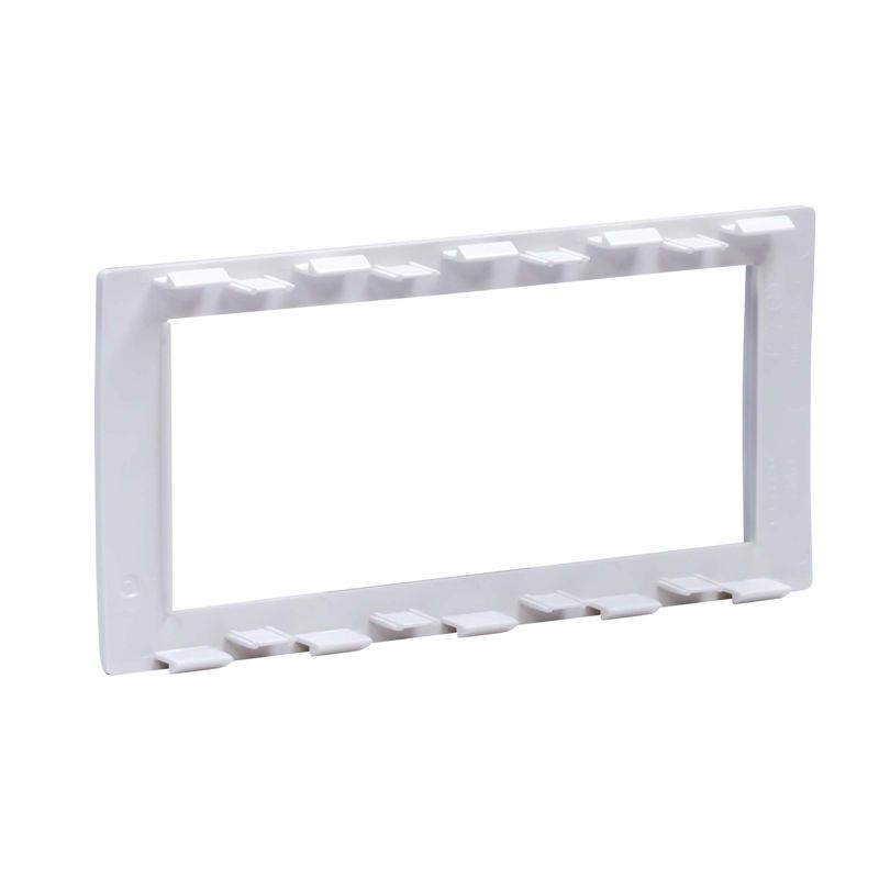 Рамка универсальная 4-модульная для электроустановочных изделий. Назначение: монтаж электроустановочных изделий серий "Viva" и типоразмер 45х45 мм в пластиковые короба "In-liner Front", алюминиевые короба и колонны "In-liner Aero", напольные башенки BUS. Характеристики: материал – АБС-пластик; универсальная ? устанавливается поверх каркасов: F0000M, F0000MB, F0000A, F0000L; 2-модульная рамка устанавливается поверх одного 2-модульного каркаса; 4-модульная рамка ? поверх двух 2-модульных каркасов; 6-модульная рамка ? поверх трех 2-модульных каркасов. Цвет белый