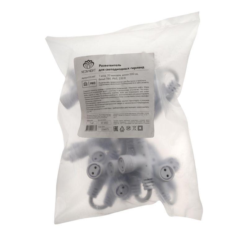 315-407 | Разветвитель-шина для уличных гирлянд Professional (1 вход 20 выходов) бел. ПВХ Neon-Night