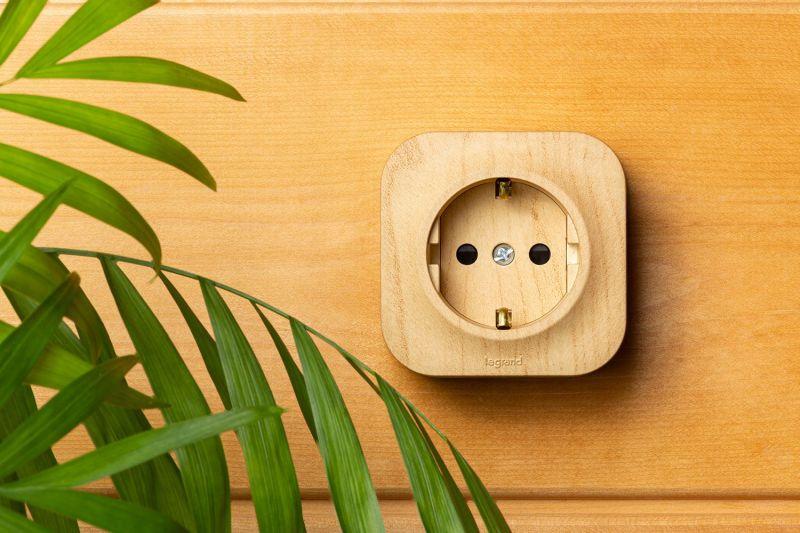 Розетка 1-м ОП Quteo 16А IP20 250В 2P+E с заземл. защ. шторки дерево Leg 782280