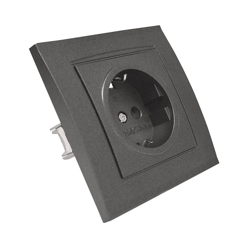 7947625-Gr | Розетка 1-м СП Бриллиант 16А IP20 с заземл. в сборе графит Universal