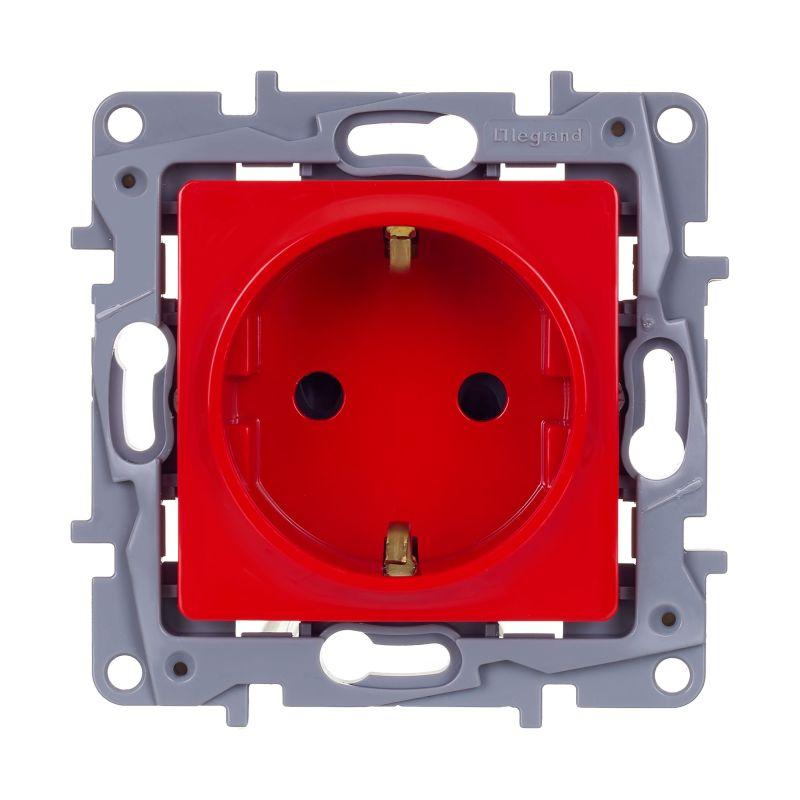 Розетка 1-м СП Etika 16А 250В 2P+E защ. шторки красн. Leg 672722