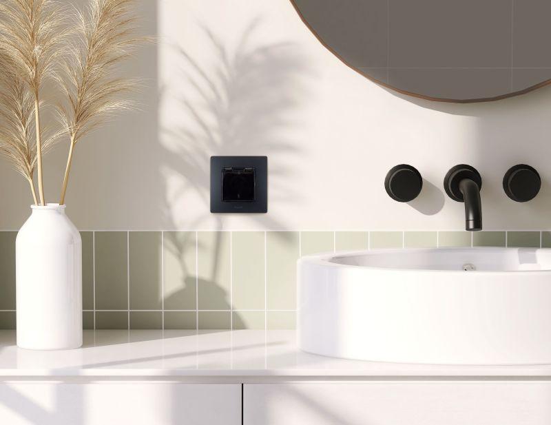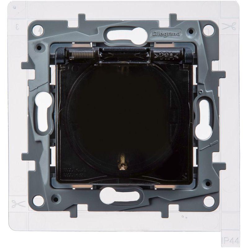 Розетка 1-м СП Etika 16А IP44 250В с заземл. со шторками с защ. крышкой безвинтов. зажимы антрацит Leg 672626