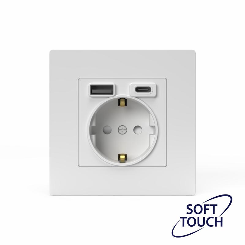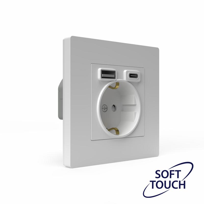 Розетка 1-м СП Pixel с заземл. с 2-мя заряд. устр. USB тип A+C IP20 механизм айс TOKOV ELECTRIC TKE-PX-R1U2AC-C34