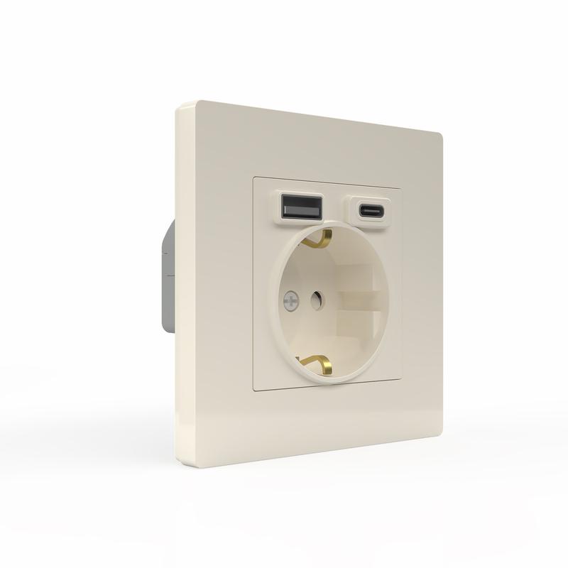 Розетка 1-м СП Pixel с заземл. с 2-мя заряд. устр. USB тип A+C IP20 механизм беж. TOKOV ELECTRIC TKE-PX-R1U2AC-C02