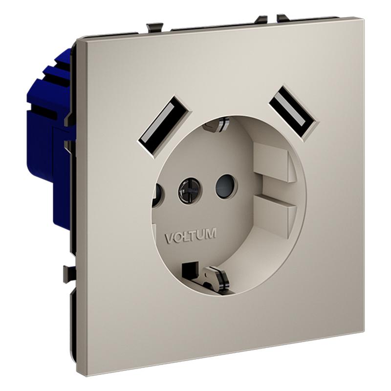 VLS040403 | Розетка 1-м СП S70 16А с USB A+A с заземл. защ. шторки механизм кашемир Voltum