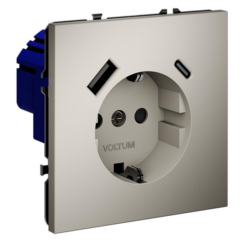VLS040503 | Розетка 1-м СП S70 16А с USB A+С с заземл. защ. шторки механизм кашемир Voltum