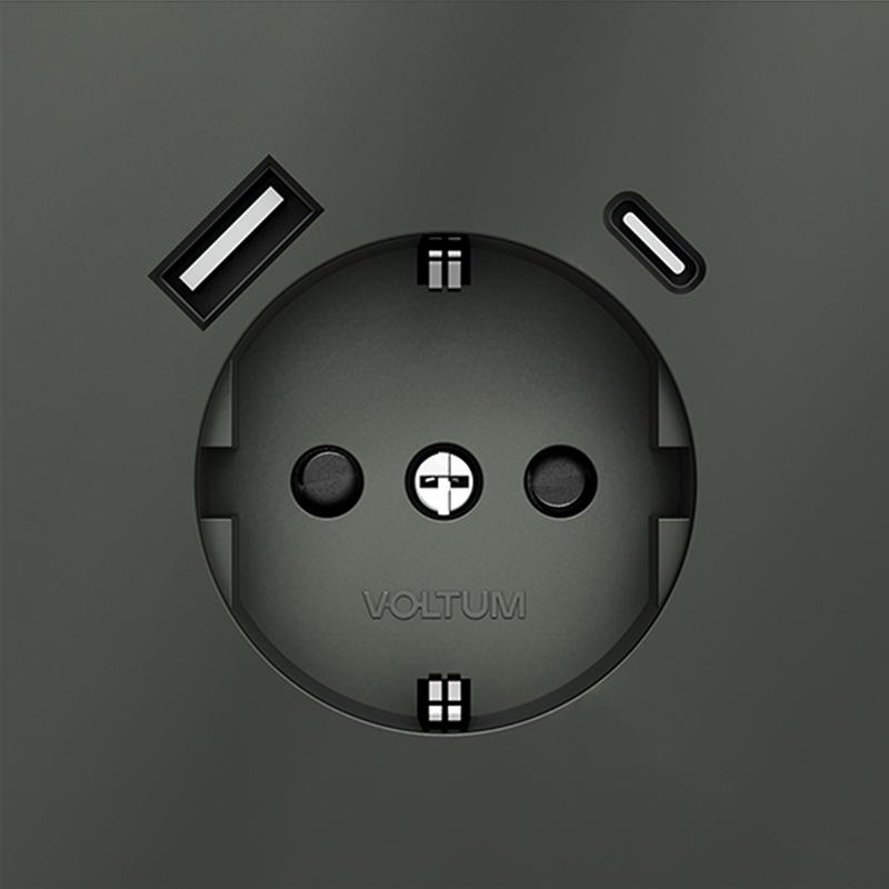 VLS040506 | Розетка 1-м СП S70 16А с USB A+С с заземл. защ. шторки механизм титан Voltum