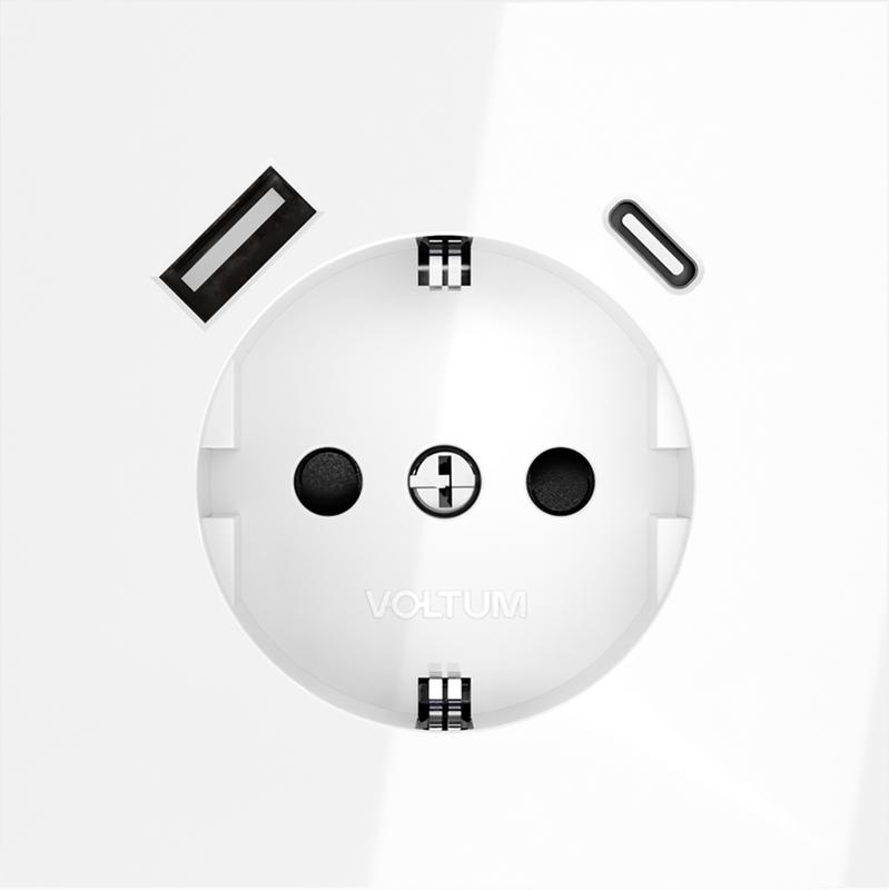 VLS040501 | Розетка 1-м СП S70 16А с USB тип A+С механизм с заземл. защ. шторки бел. глянцевый Voltum