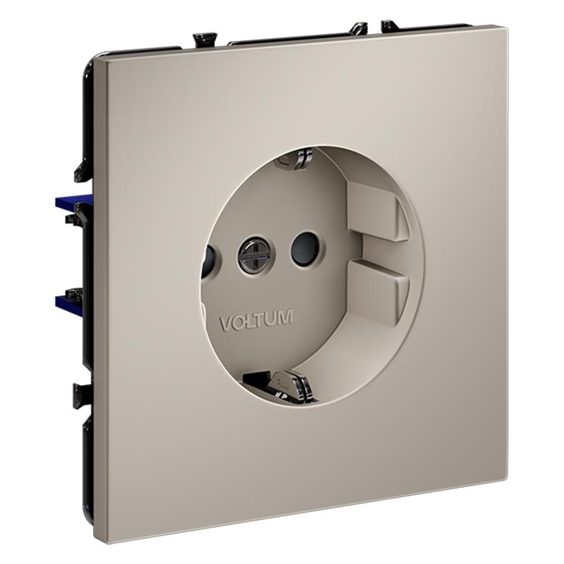 Место установки. Простота установки и демонтажа, стильный дизайн и высокое качество делают розетки Voltum идеальным выбором для дома, офиса или любых других помещений, соответствующих инструкции по эксплуатации. Корпус. Внешние накладки и корпус выполнены из поликарбоната — долговечного и безопасного материала. Он не разлагается под действием ультрафиолета и стойко выдерживает повышенные температуры, вызванные протекающими токами. Конструктивные особенности. Контактные пары выполнены из бронзы, а заземляющие контакты — с дополнительным гальваническим покрытием. Бронза обеспечивает высокую безопасность при подключении электроприборов и эффективную бесперебойную передачу тока, сохраняя передаточное усилие, что повышает срок безотказной эксплуатации.