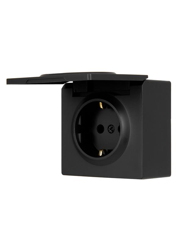 Розетка 1-мест. с заземл. с крышкой LETO ПБТ черн. бархат LEZARD 752-4200-123B