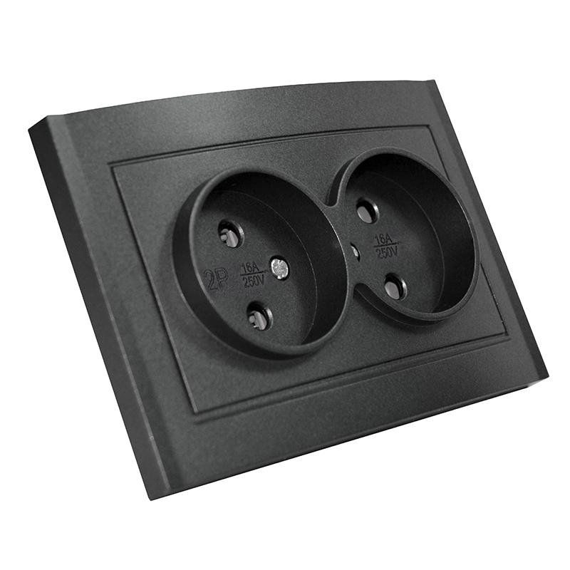 7947519-Gr | Розетка 2-м СП Бриллиант 16А IP20 без заземл. в сборе графит Universal