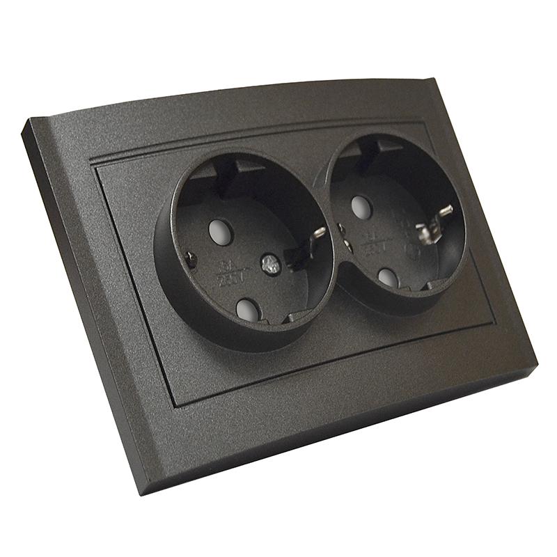 7947540-Gr | Розетка 2-м СП Бриллиант 16А IP20 с заземл. защ. шторки в сборе графит Universal
