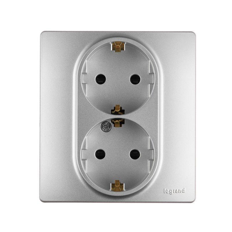 Розетка 2-м СП Etika 16А IP31 250В 2х2P+E с заземл. защ. шторки немецк. стандарт безвинт. клеммы алюм. Leg 672433