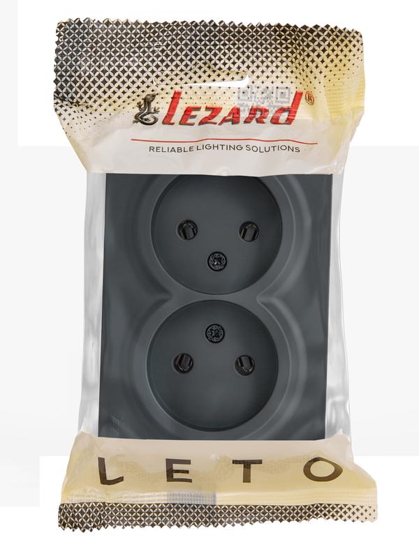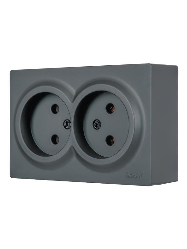 752-3400-128B | Розетка 2-м ОП LETO без заземл. закрытый корпус ПБТ графит LEZARD
