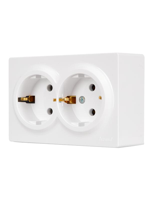 752-0200-127B | Розетка 2-м ОП LETO с заземл. закрытый корпус ПБТ бел. LEZARD