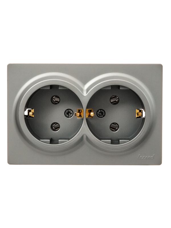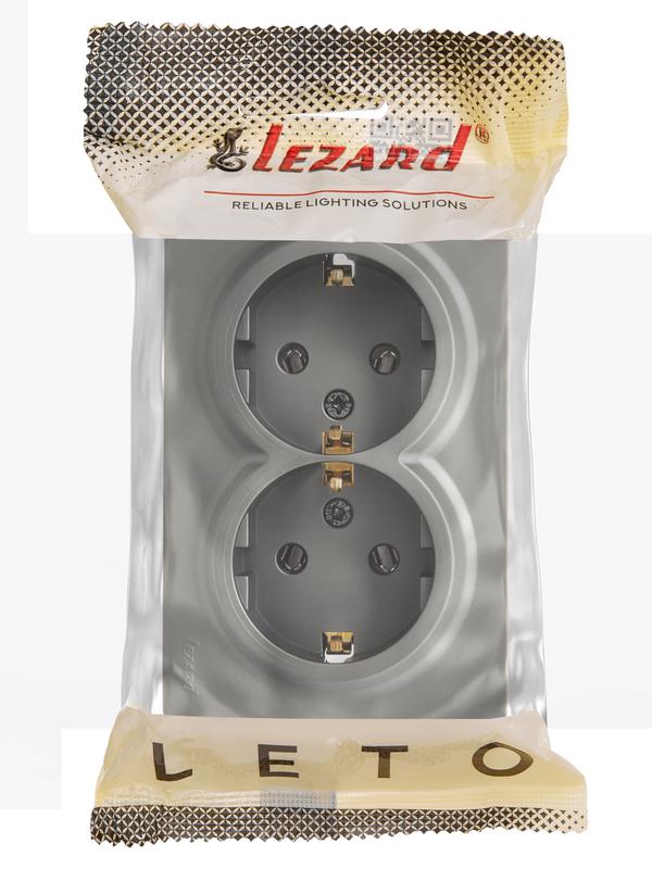 752-3500-127B | Розетка 2-м ОП LETO с заземл. закрытый корпус ПБТ платина LEZARD