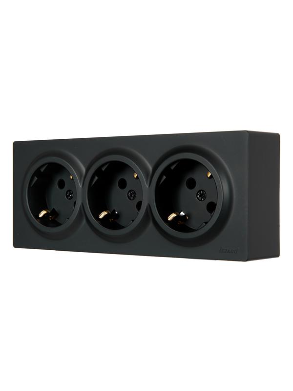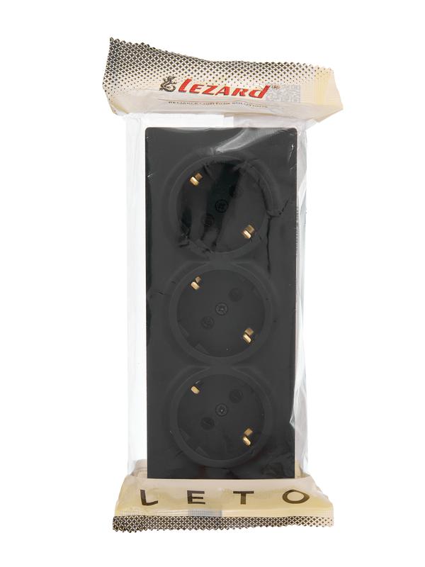 Розетка 3-мест. с заземл. LETO закрытый корпус ПБТ черн. бархат LEZARD 752-4200-127BUP
