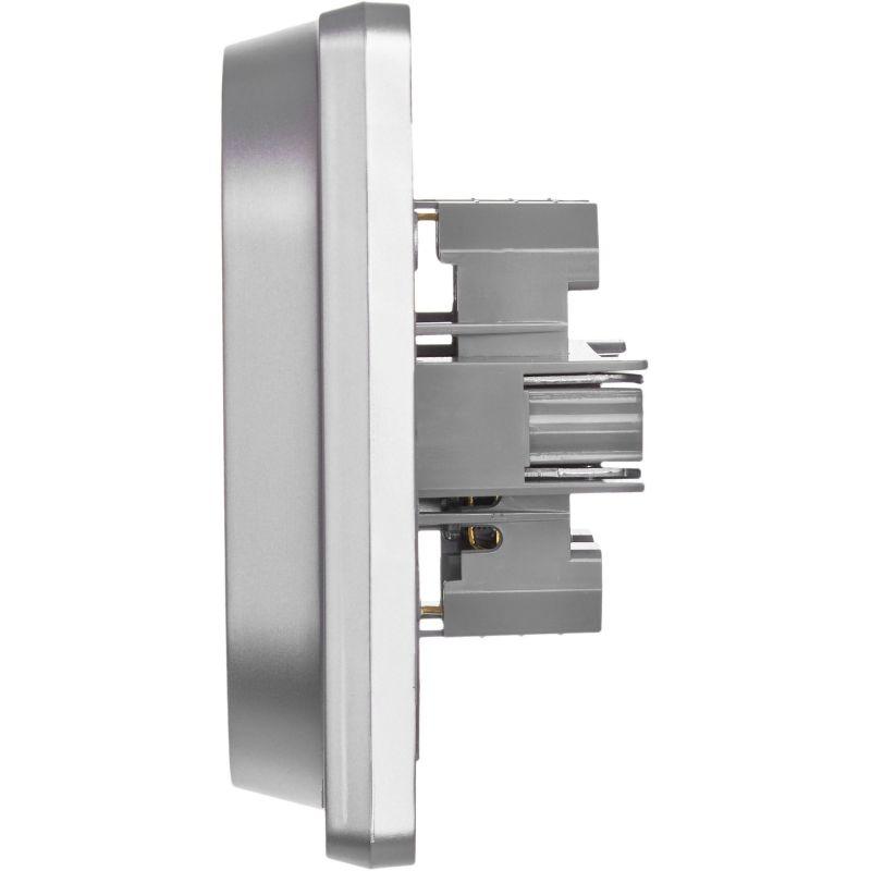 Розетка двойная с заземлением для скрытого монтажа Inspiria, цвет "Алюминий", максимальный ток 16А, напряжение ~250В, максимальная мощность 3680Вт, винтовые зажимы. Применяется для присоединения однофазных электрических потребителей к сети переменного тока в зданиях с проводкой с заземлением (с защитным проводником). Позволяет компактно разместить две розетки в одном установочном месте.