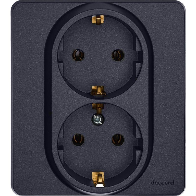 Розетка двойная с заземлением для скрытого монтажа Inspiria, цвет "Антрацит", максимальный ток 16А, напряжение ~250В, максимальная мощность 3680Вт, винтовые зажимы. Применяется для присоединения однофазных электрических потребителей к сети переменного тока в зданиях с проводкой с заземлением (с защитным проводником). Позволяет компактно разместить две розетки в одном установочном месте.