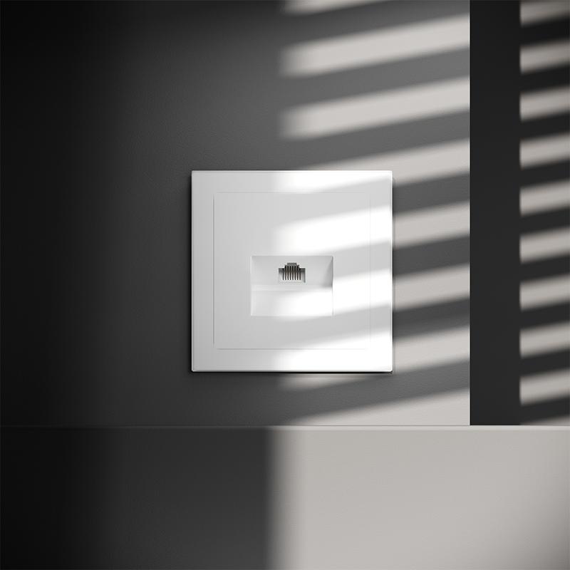 Место установки. Компьютерные розетки применяются в домашних и офисных сетях для подключения персонального компьютера, принтера, роутера или любого другого сетевого устройства к современным информационным системам. Корпус. Розетка выполнена в фирменной стилистике Voltum. Внешние материалы — это поликарбонат высокой прочности. Устройство оборудовано специальным сетевым разъемом (или сразу двумя у модели RJ45+RJ45). Конструктивные особенности. Компьютерная розетка RJ45 совместима с информационными сетями шестого поколения со скоростью передачи данных до 1000 Мбит/сек. Также она поддерживает стандарт 5e. Подключение к конечному устройству выполняется через сетевой кабель (витую пару)