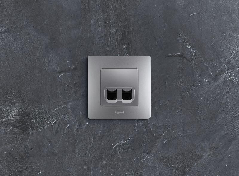 Розетка компьютерная 2-м СП Etika RJ45 кат.5E UTP механизм алюм. Leg 672455