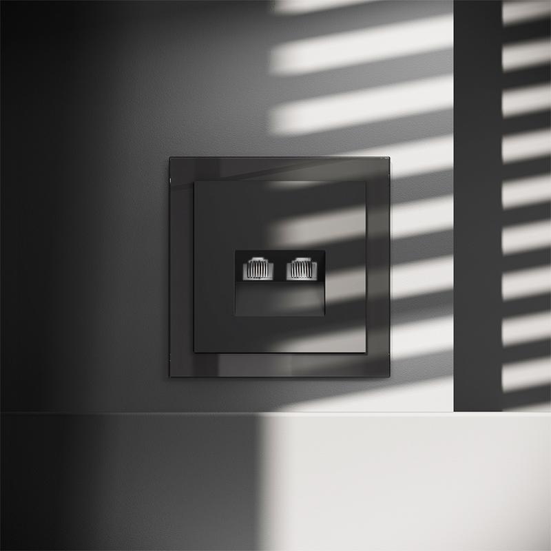 VLS060208 | Розетка компьютерная 2-м СП S70 RJ45 + RJ45 кат.6 механизм черн. матов. Voltum