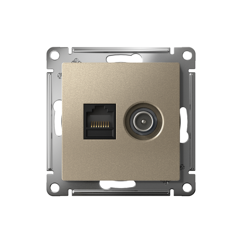 ATN000589 | Розетка компьютерная + телевизионная 2-м AtlasDesign RJ45 кат.5E + TV механизм шампань SE