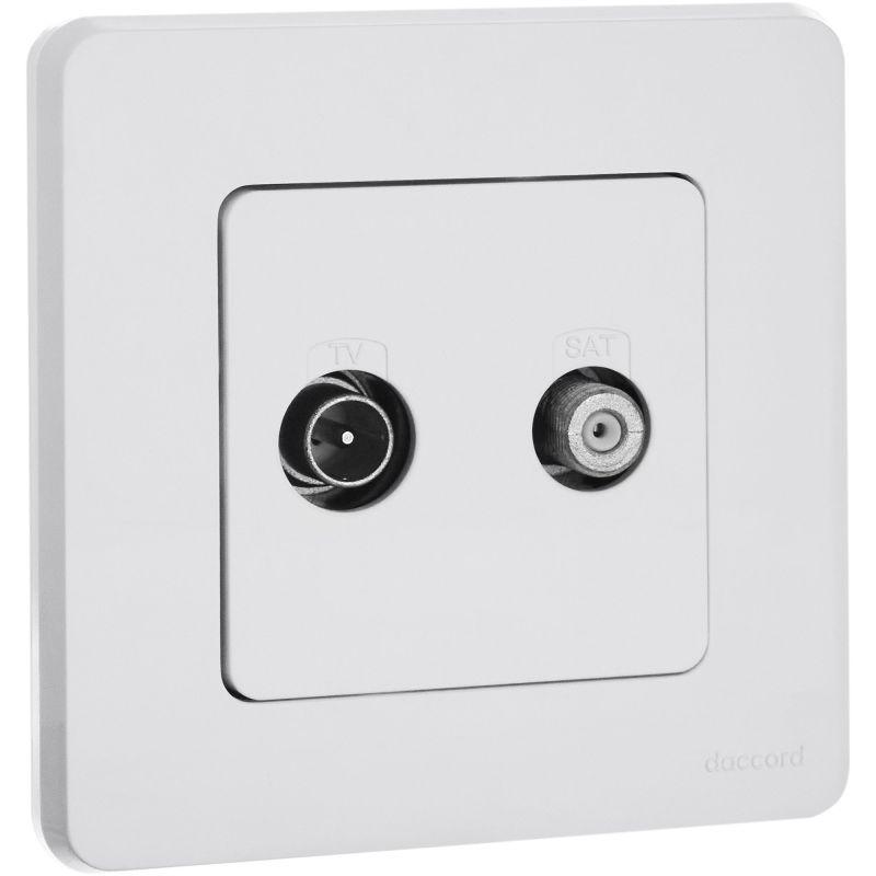 Розетка TV-SAT двухкабельная для скрытого монтажа Inspiria, для схемы "звезда", затухание 1,5дБ, 4-2400МГц / 1,5дБ 4-2400МГц, поддержка обратного питания для активных антенн до 500мА, цвет "Белый". Используется для подключения ТВ приемника к системе эфирного вещания, а также для подключения ресивера к спутниковой антенне.