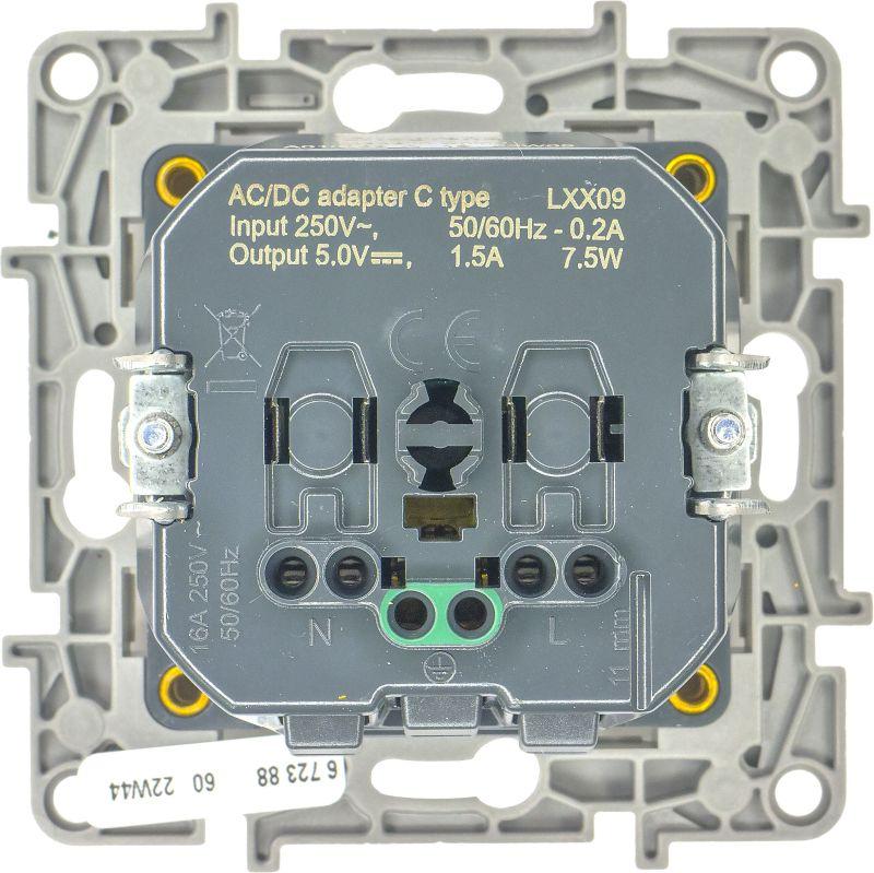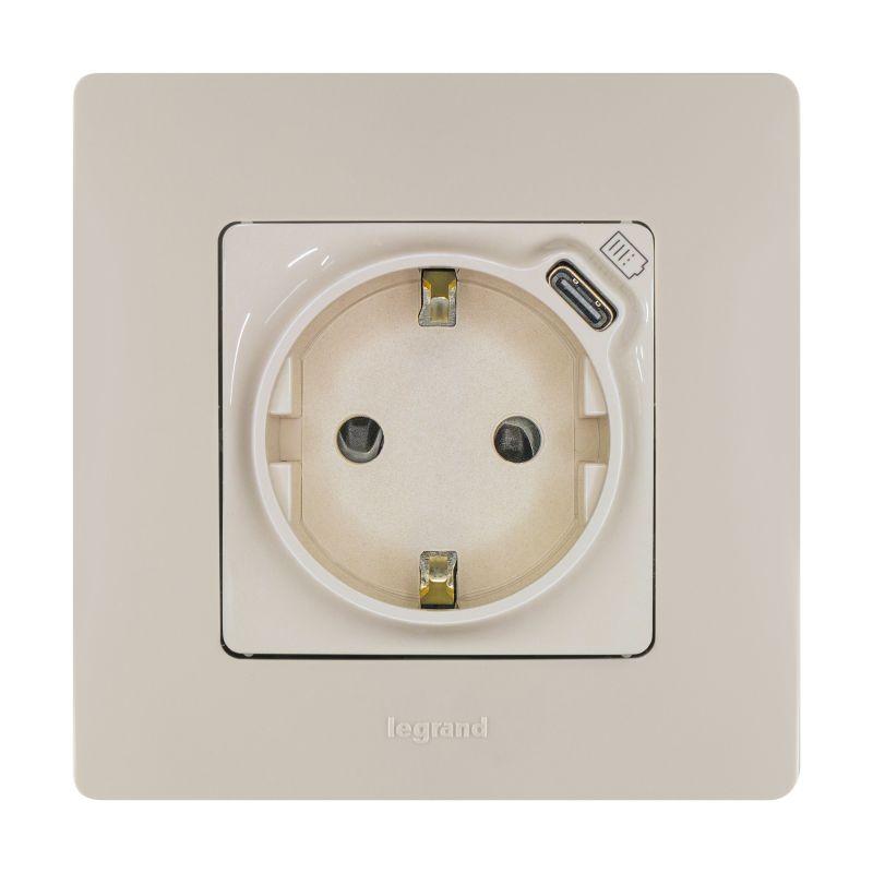 Розетка USB C EtikА 16А 250В 1500мА 7.5Вт с заземл. защ. шторки безвинт. зажимы сл. кость Leg 672388