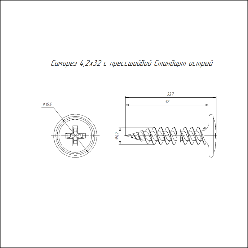 Саморез 4.2х32 с прессшайбой острый цинк (уп.500шт) Промрукав PR08.3649